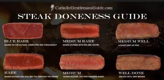 要想煎出一块好牛排,首先要选择一块好牛排,上周我们已经教过大家怎样去选一块好牛排了。其次影响牛排味道最重要的因素是——熟度,因为熟度决定了牛排的口感和滋味,所以在开始之前,必须要先了解一下牛排的熟度。