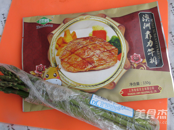 1.备好菲力牛排和芦笋,特意买的澳洲菲力牛排