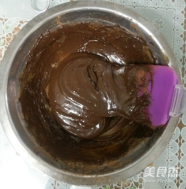 将拌好的蛋黄可可糊冷却到室温状态