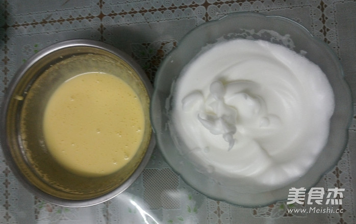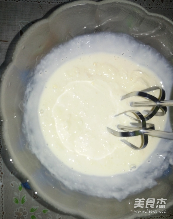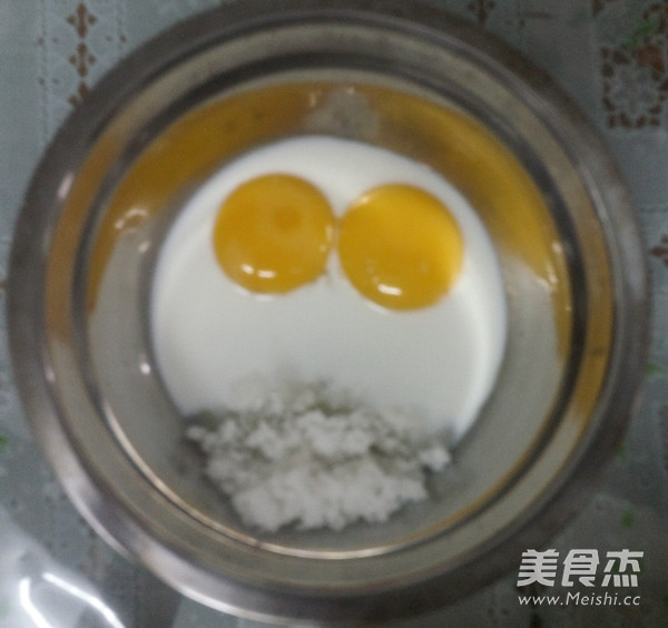 蛋黄盆中:加牛奶和细砂糖
