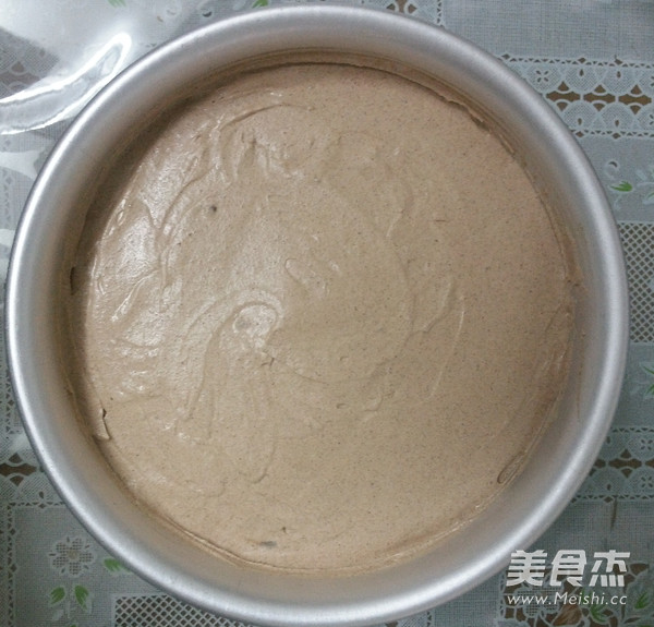 倒入全部的巧克力芭菲糊。用刮刀抹匀