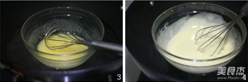 3.加热并搅打蛋黄的时候,一定要注意火候,不要加热过头使蛋黄凝固成颗粒状。加热到非常浓稠的状态就可以了;