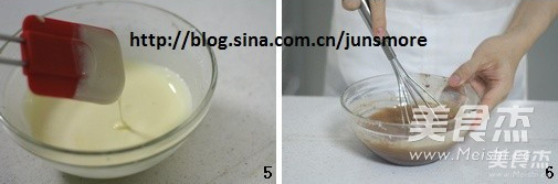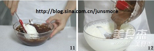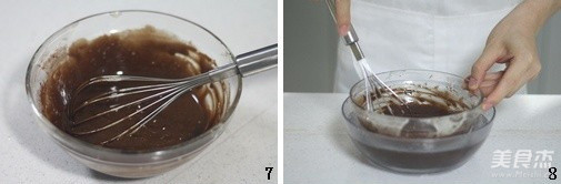 再筛入可可粉,搅拌至均匀;将拌好的蛋黄可可糊冷却到室温。如果想加速冷却,可以将碗坐在冰水里搅拌直到冷却