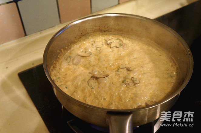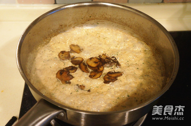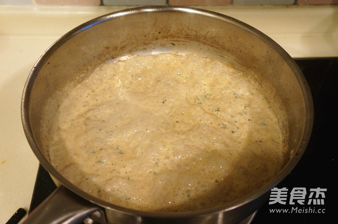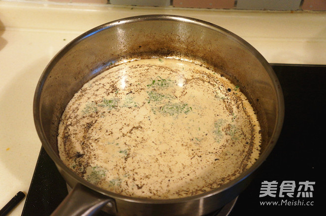 加入奶油、高汤、欧芹,搅拌均匀。