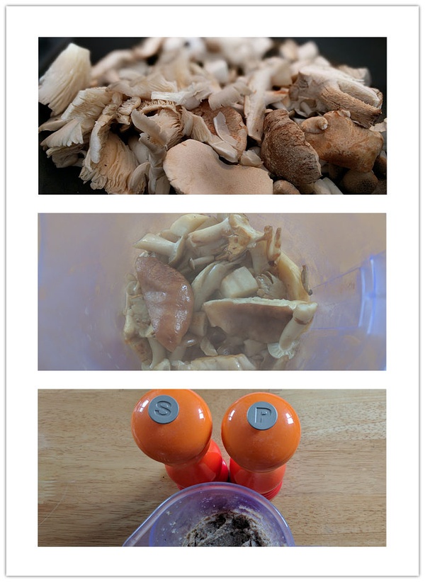 蘑菇炒熟之后,打成泥,加入盐和胡椒,其实除了白口蘑之外的蘑菇,只要达到三种或者以上,做出来的蘑菇泥都会鲜得令人落泪。因为从本质上来说蘑菇也算是一种肉。