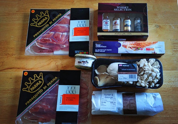 于是我回到家之后就开始自己做威灵顿牛排,之前做过一次,用的是自己手工切的西班牙火腿,这次则是机器切片的20个月陈酿的帕尔马火腿。关于我如何消灭掉一条火腿,请戳这两篇文章