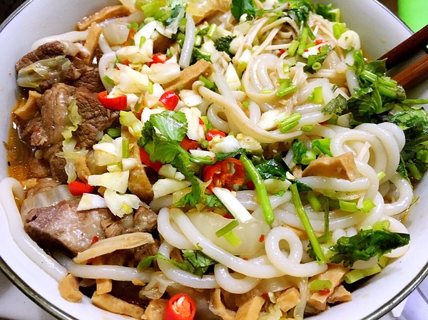 然后煮进去粉或面就好啦。(注意,这种汤面,要把粉面再另一个锅煮好,用冲凉水,直到水不浑浊,不能把生的面直接煮汤里,会变成浆糊)