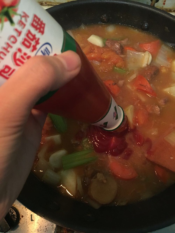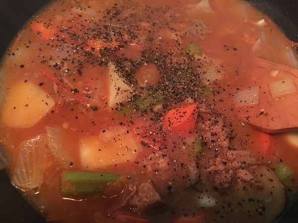 撒进去无数的现磨黑胡椒(比磨好的好吃500多倍吧),综合香草粉(没有算了),我爱吃辣椒就撒辣椒粉。生肉下去的,就小火炖到肉烂,熟肉下去的,就小火炖到土豆烂。出锅前放盐调味。要是多加水,很开心地宣布,罗宋汤做好了。