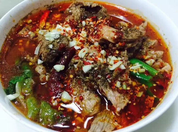 姜片郫县豆瓣花椒小米椒干辣椒炒炒,加水酱油黄酒糖调味。煮进去肉片,也可以放点豆芽,煮熟了就倒进垫着生菜的碗里,撒上大量花椒粉辣椒粉,浇一泼热油,最后撒点生蒜蓉,拌拌。