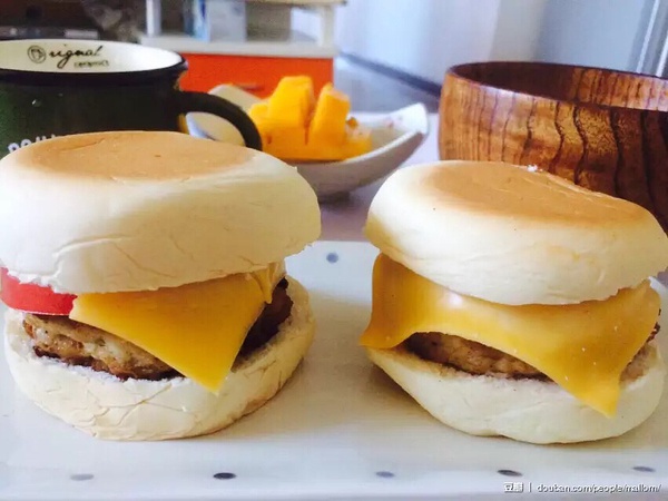 加点生菜番茄黄芥末酱(或蛋黄酱番茄酱甜辣酱,自己喜欢的任何酱)芝士片就是还不错的汉堡啦。