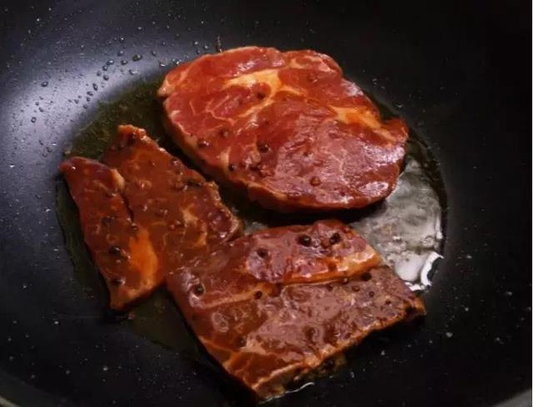 煎牛排最好用黄油,香~没有黄油也可以用橄榄油。油热下牛排,小火,要不停翻面。