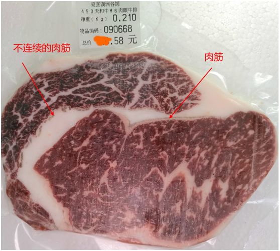 有人说,如果我在网上买到哪个牌子的牛排含有肉筋,我就再也不买那家的了。可惜原切牛排很多都有筋的。除非买拼接牛排,或者买修整过的修型牛排。