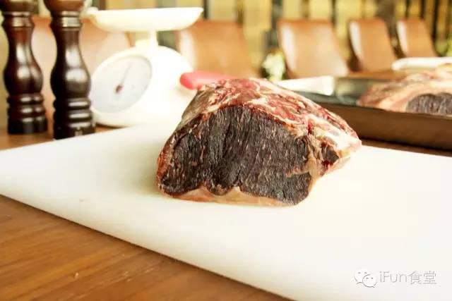经过45天自然风干的熟成牛肉,将肉质内多余的血水经过时间的雕琢全部排掉,形成了一种独特的口感,比起传统处理的牛肉褪去了一丝酸涩,更能还原牛肉最原本的味道,风味更佳,且油脂和水分同时渗透在肉中,使西冷牛排肉更加汁多嫩滑。