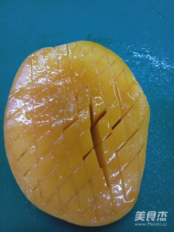 1.选购新鲜,清洗后把芒果切开。