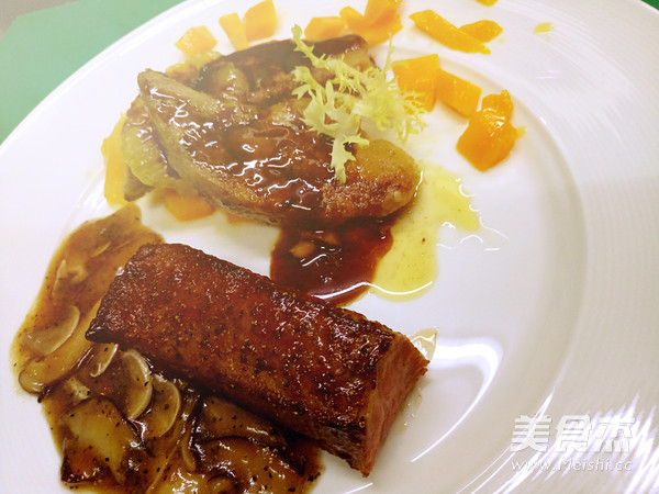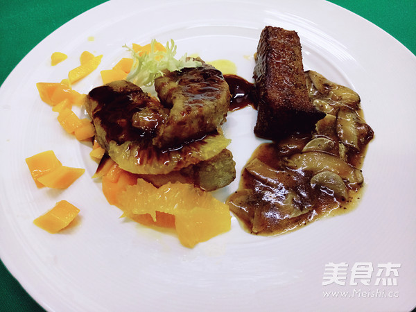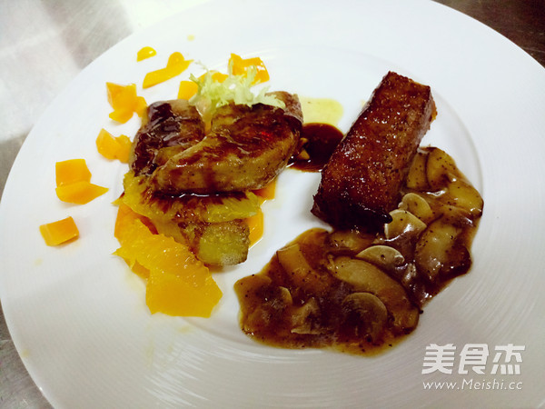 香芒法式煎鹅肝配西冷牛排的做法