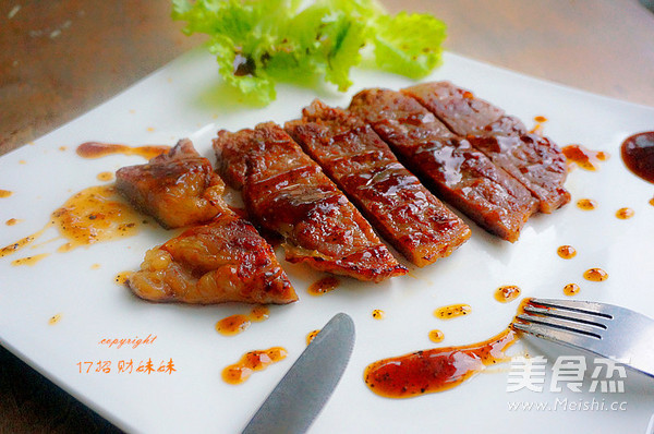 我习惯9分熟的西冷牛排包上生菜吃,有种韩式烤肉的感觉,大家可按照自己的口味选择吃法哦。