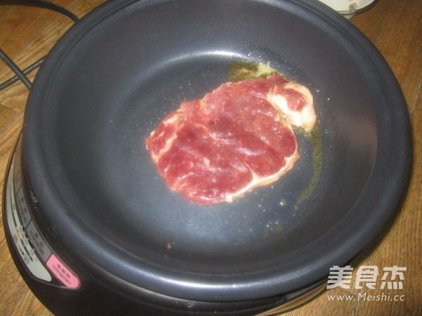 将西冷牛排放在锅子中,覆盖在黄油之上