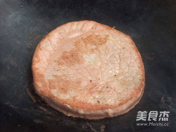 铁锅烧热,西冷牛排入锅煎。锅温要高,锁住西冷牛排水分,以保证西冷牛排鲜嫩多汁