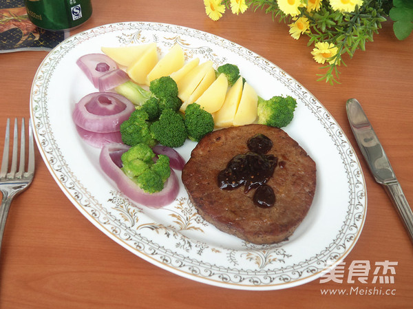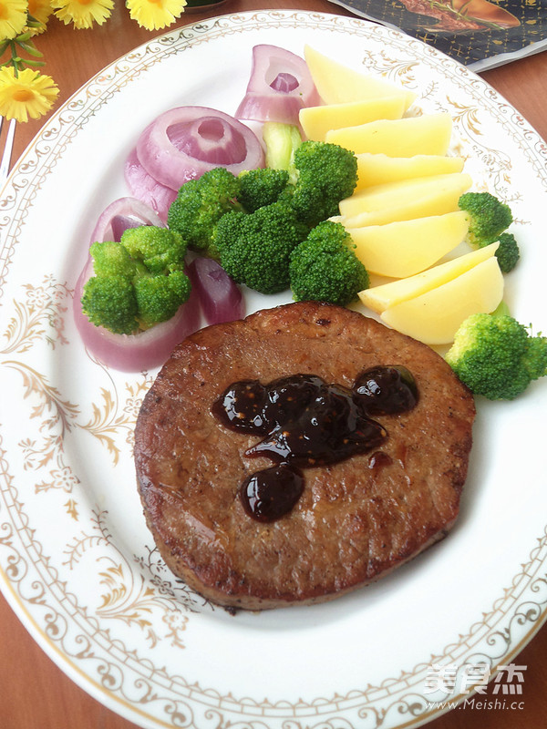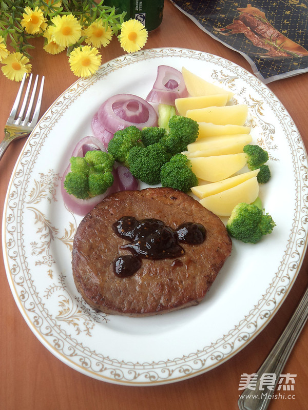 煎至自己喜欢的成熟度,盛出装盘,配上提前焯好的配菜,淋上黑胡椒酱即可享用